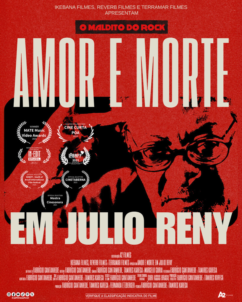 Amanhã, 20, chega aos cinemas gaúchos Amor e Morte em Júlio Reny, a biografia do renomado rockeiro gaúcho, conhecido como “O Maldito do Rock”. O longa dirigido por Fabrício Cantanhede e produzido por Tamires Kareca e Fernanda Etzberger da Ikebana Filmes, produtora da própria Fernanda em sociedade com Allan Souza Lima, sendo distribuído pela A2 Filmes.