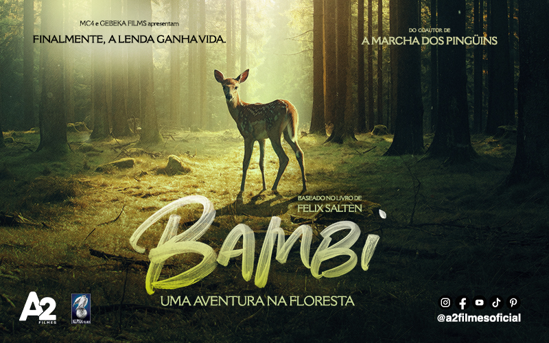 Bambi: Uma Aventura na Floresta (Bambi: L’Histoire D’Une Vie Dans Les Bois AKA Bambi: A Tale of Life in the Woods, 2024), longa-metragem francês de aventura, distribuído pela A2 Filmes em parceria com Alpha Filmes, estreia, oficialmente, nos cinemas brasileiros, a partir do dia 28 de agosto de 2025, com classificação indicativa Livre e 77 minutos de duração.