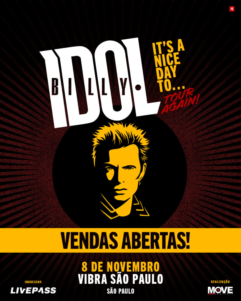 Billy Idol, lenda viva e ícone absoluto da história do rock, está pronto para incendiar o Brasil. O astro britânico traz ao país, ainda este ano, a tão aguardada turnê mundial “It’s a Nice Day to… Tour Again!”, prometendo uma noite cheia de energia, sucessos inesquecíveis e muita rebeldia.