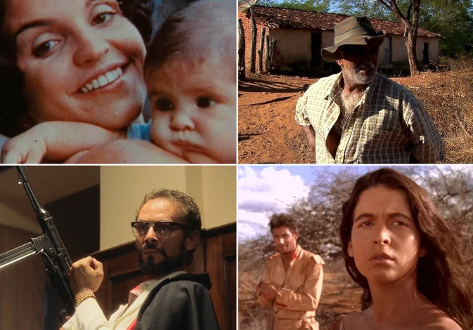 Cenas de “Leila para Sempre Diniz”, “Sertão, Sertões”, “O Homem da Capa Preta” e “Guerra de Canudos”. Fotos: Divulgação