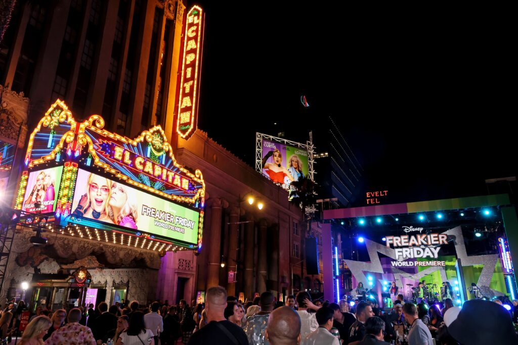 O elenco e os cineastas de Uma Sexta-Feira Mais Louca Ainda, dentre eles Jamie Lee Curtis, Lindsay Lohan, Julia Butters, Sophia Hammons, Manny Jacinto, Maitreyi Ramakrishnan, Rosalind Chao, Chad Michael Murray, Vanessa Bayer, a diretora Nisha Ganatra, a produtora Kristin Burr e a produtora executiva Ann Marie Sanderlin, estiveram no El Capitan Theater na noite de ontem, 22 de julho, para a première mundial do filme. Eles foram acompanhados pela banda fictícia do filme, Pink Slip, que surpreendeu os convidados no tapete vermelho com uma apresentação especial antes da exibição.