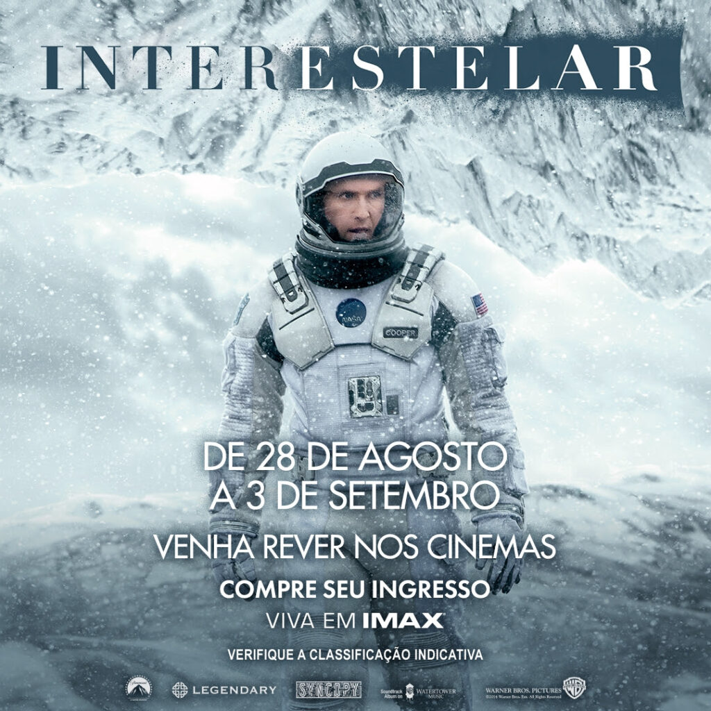 A Warner Bros. Pictures Brasil anuncia o retorno do icônico filme Interstellar aos cinemas, com sessões especiais entre os dias 28 de agosto e 3 de setembro. Dirigido por Christopher Nolan e sonorizado por Hans Zimmer, o longa conquistou o Oscar de Melhores Efeitos Visuais em 2015 e promete emocionar o público mais uma vez com sua história envolvente e visual impressionante. A pré-venda para as reexibições já está disponível a partir de hoje, 14 de agosto; saiba mais no link.