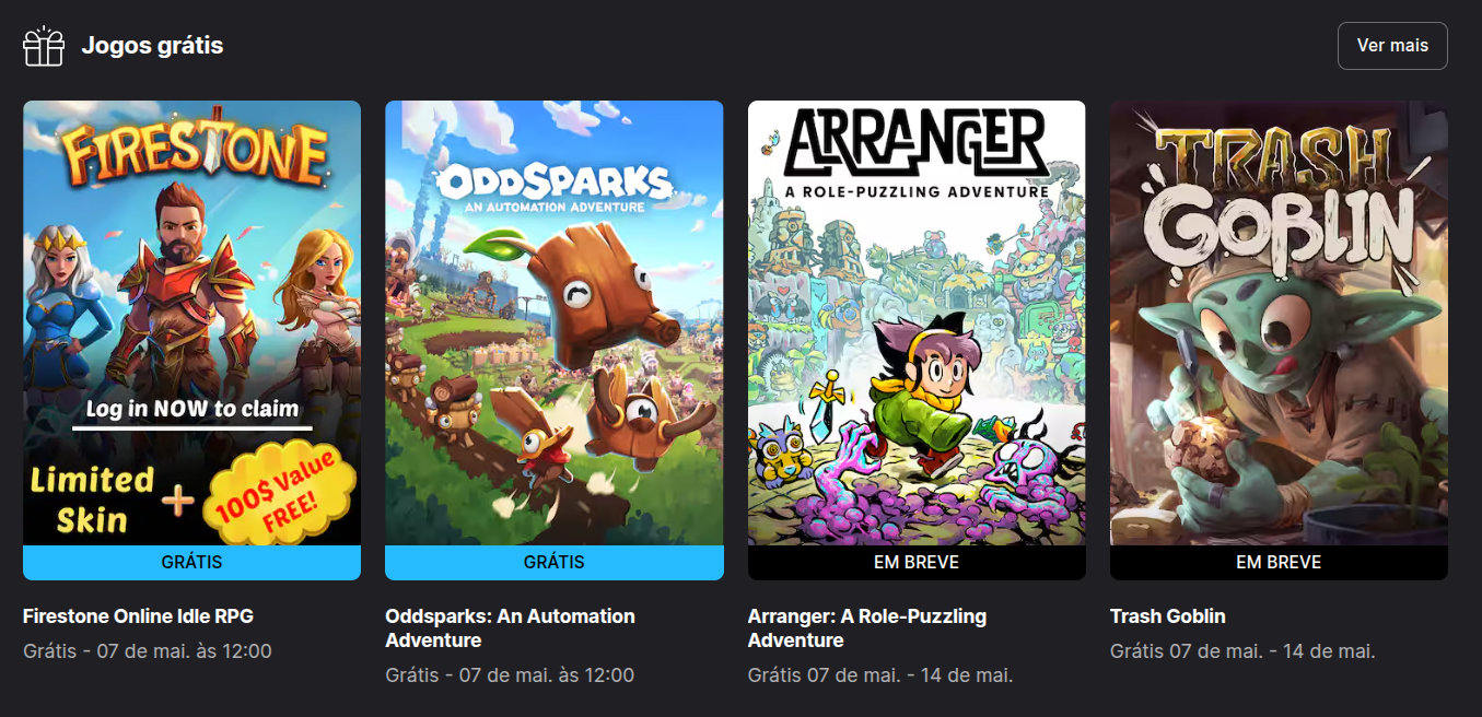Os jogos gratuitos são liberados pontualmente às 12h (horário de Brasília) toda quinta-feira. Isso significa que, a partir desse horário, você já pode acessar a Epic Games Store e garantir seus novos jogos!