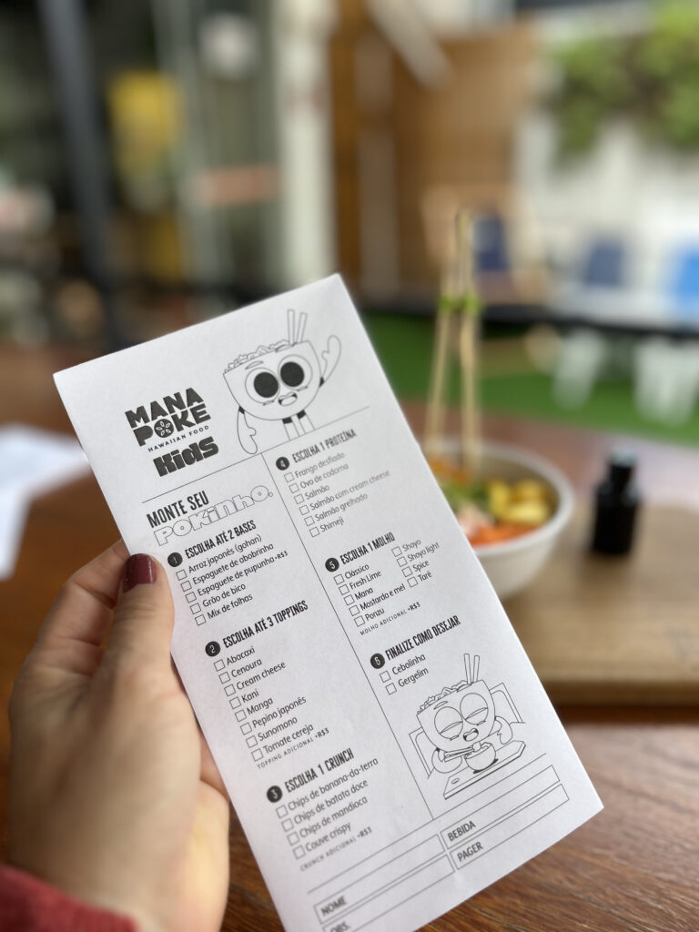 “A ideia é tornar a experiência do poke para crianças algo divertido, nutritivo e saudável. Elaboramos uma folhinha bem lúdica como forma de incentivar a autonomia deles para preencherem sozinhos e escolherem os ingredientes que mais gostam”, ressalta Carolina Ceravolo, head de marketing da Rede Mana Poke.