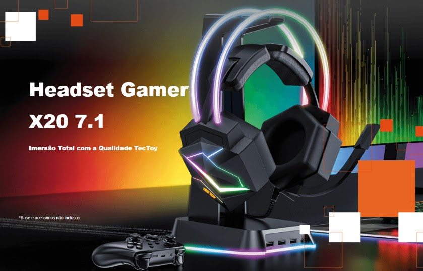 O novo Headset Gamer X20 da Tec Toy também oferece iluminação LED que reforça seu visual gamer e tem conexão USB Plug & Play para instalação fácil e rápida. Versátil, é compatível com notebooks e desktops, e uma opção completa para quem busca desempenho sonoro, estilo e imersão durante as partidas.